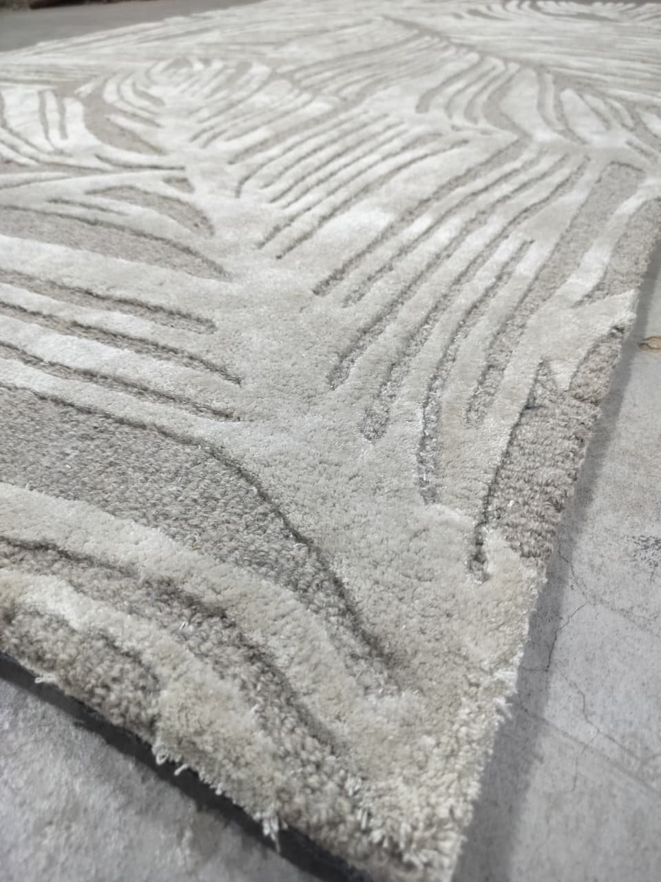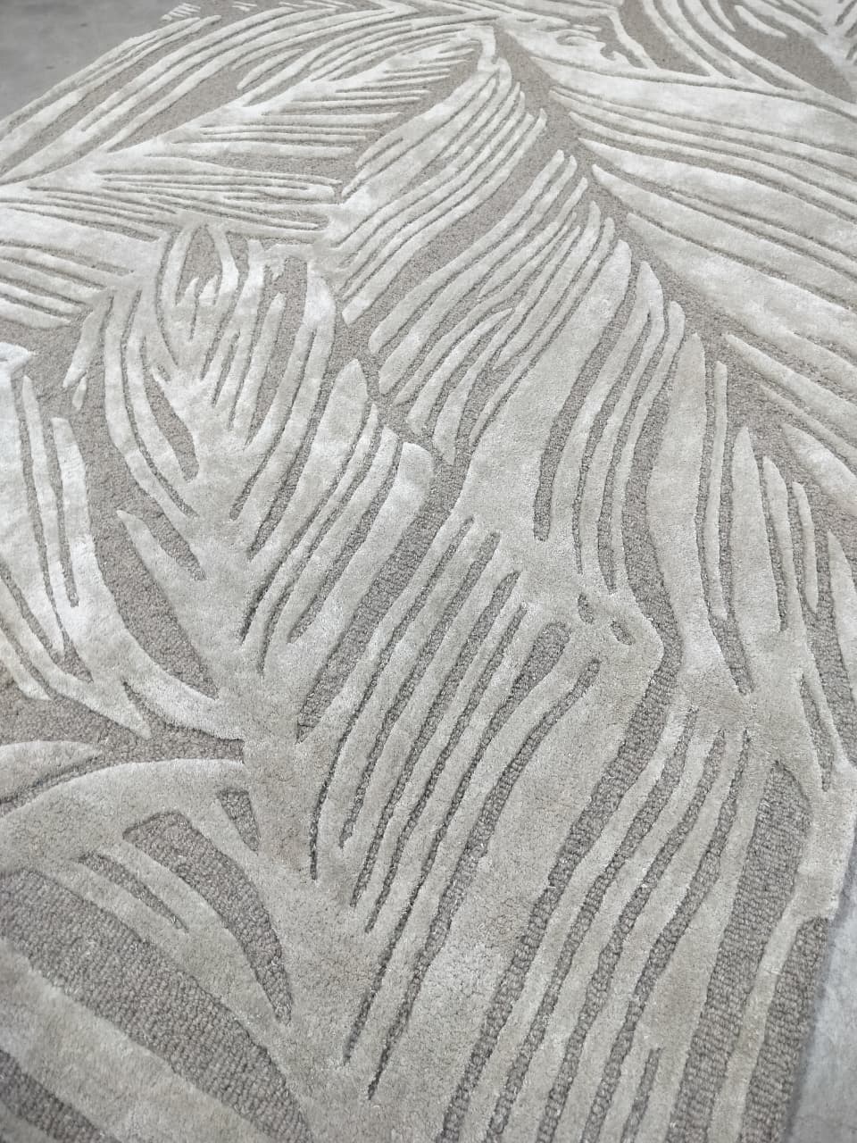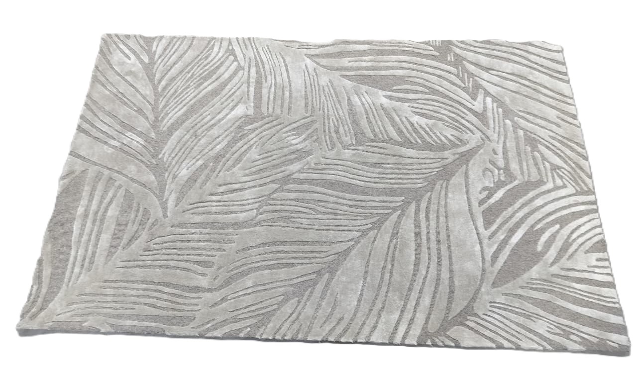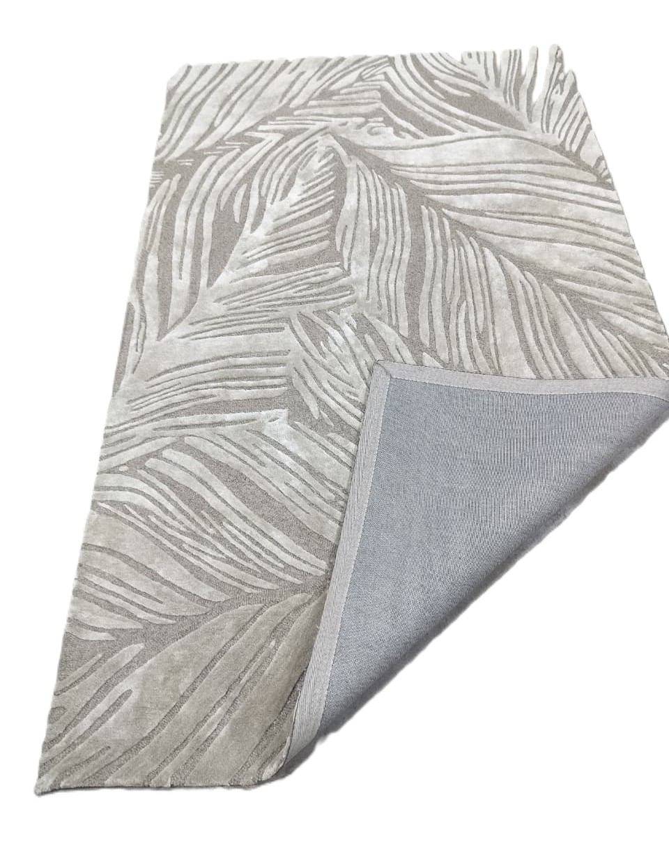 Hand-Tufted Wool Rug – Contemporary Leaf Pattern in Soft Grey